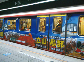 立山黑部每年最大的盛事除了四月中旬的開山活動之外,秋天的紅葉美景也是眾所期待的。今年4╱16華航啟動富山定期航班,創下將近八成的驚人搭乘率,目前也從原本的每周2班增加為每週3班,只需3小時航程,就可以輕鬆前往親近立山黑部的山明水秀。壁面廣告、捷運大幅宣傳楓紅美景立山黑部積極宣傳 立山黑部推廣商品一...